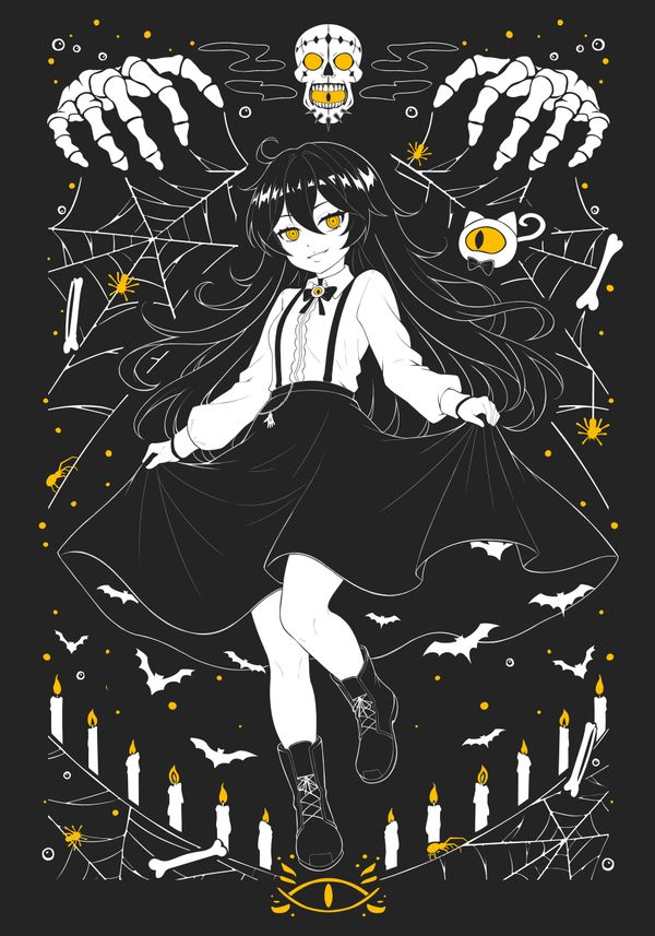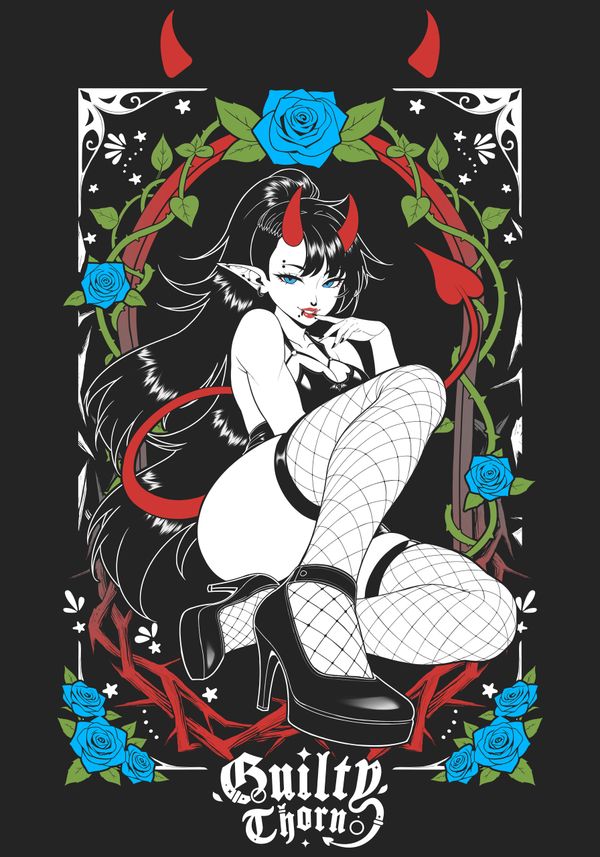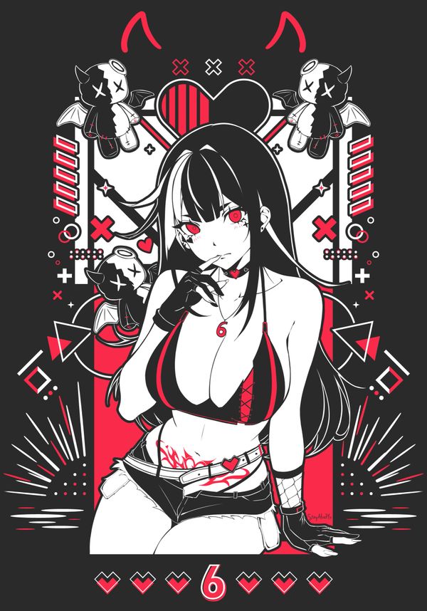If you're looking to have your character (or fanart) turned into a design for your own merch store, usually on t-shirts and hoodies, you’re in the right place! Below, you’ll find some examples of designs I’ve created in this style. As you can see, most of the images follow a similar style with varying color tones, characters, and background elements.