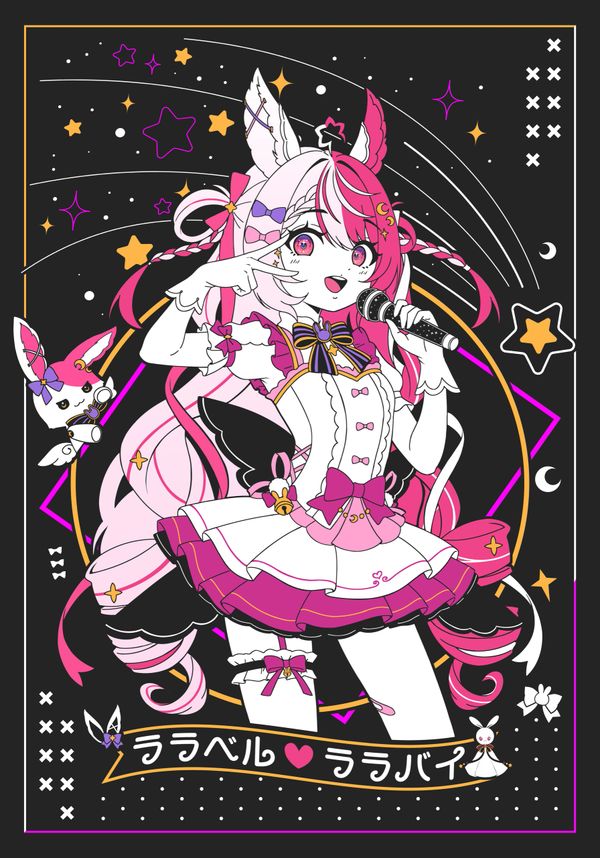 custom character illustrations with background elements, designed in a merch-ready style — mostly for VTubers (virtual idols/characters) and original characters.
